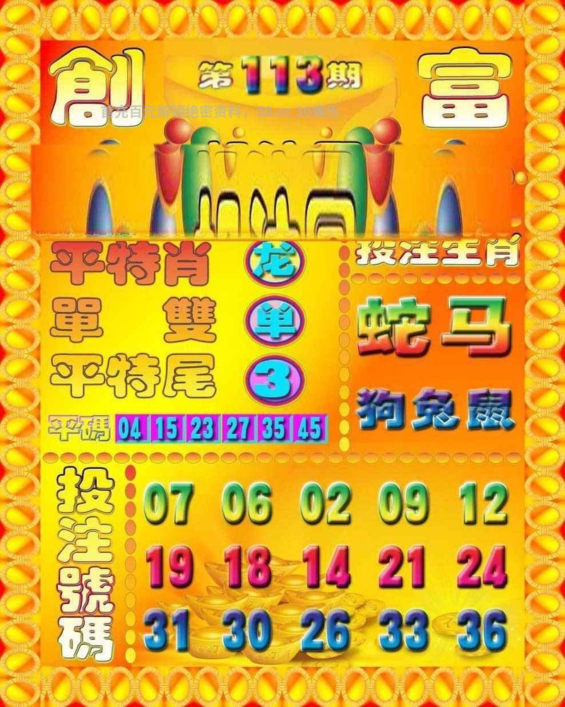 | 117期港彩创富投注解特开(發00) 综合:鼠龙马羊蛇 主特:06.18.02.14.36.48.11.23.01.13 单双:双数 平特肖:牛肖 平特尾:7尾  |